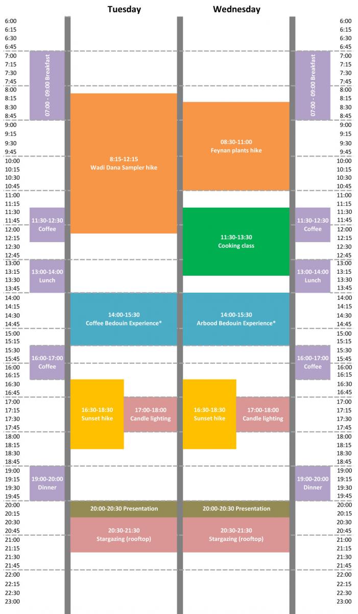 Check out what's planned for this day on our schedule below. Guided activities are included in the price of your stay, but there is a small supplement for activities involving the local community this money goes directly to the family hosting you. Mountain bikes and day with a Bedouin shepherd are available every day!